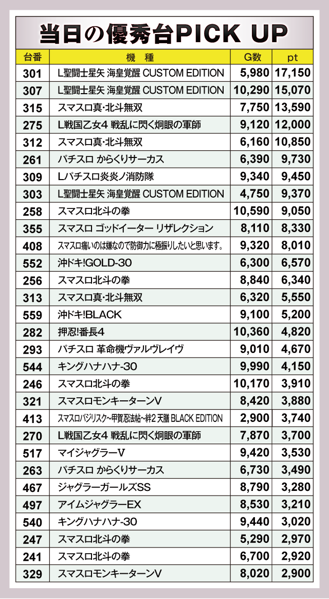 ※差枚pt順に掲載しています。