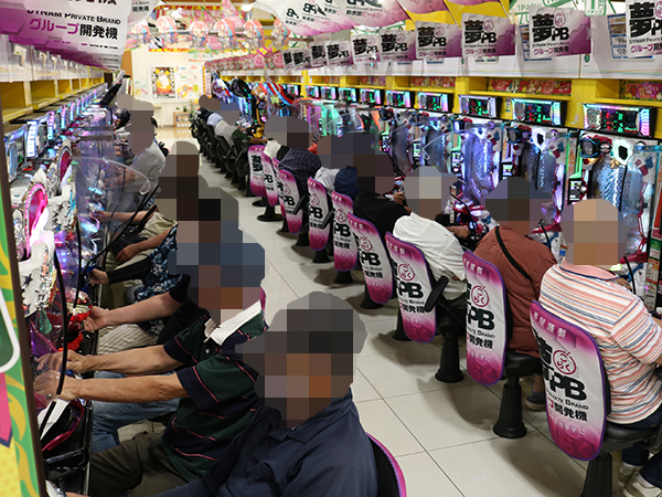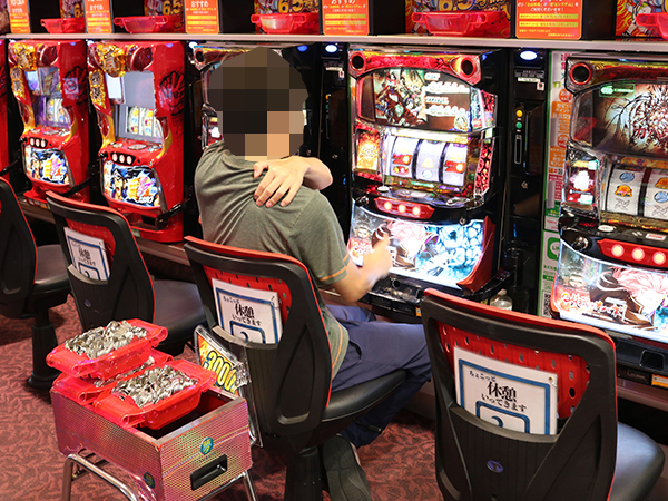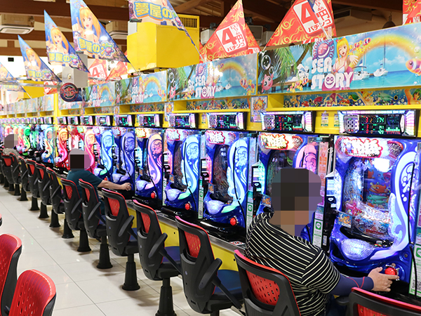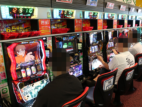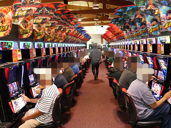 取材時は多くのプレイヤーが来店。パチンコ・パチスロともに、様々な機種が支持を得ていた。