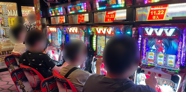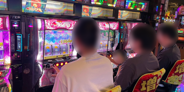 楽園上新屋店は3154番台の万枚超を皮切りに、半数の台がプラスで終了しているだけにシマ内は常に活気に満ち溢れる一日となった。