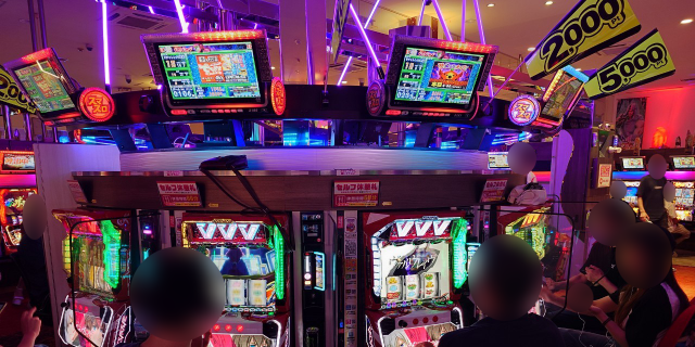 楽園上新屋店は3154番台の万枚超を皮切りに、半数の台がプラスで終了しているだけにシマ内は常に活気に満ち溢れる一日となった。