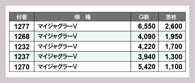 ※差枚数順に掲載しています