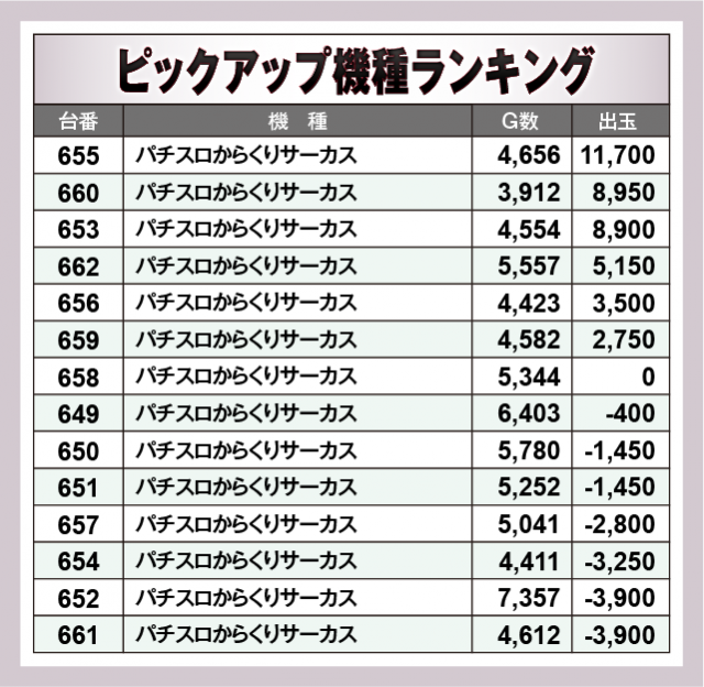 ※出玉数順に掲載しています