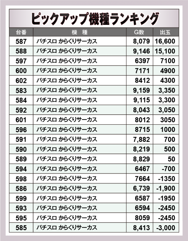 ※出玉数順に掲載しています