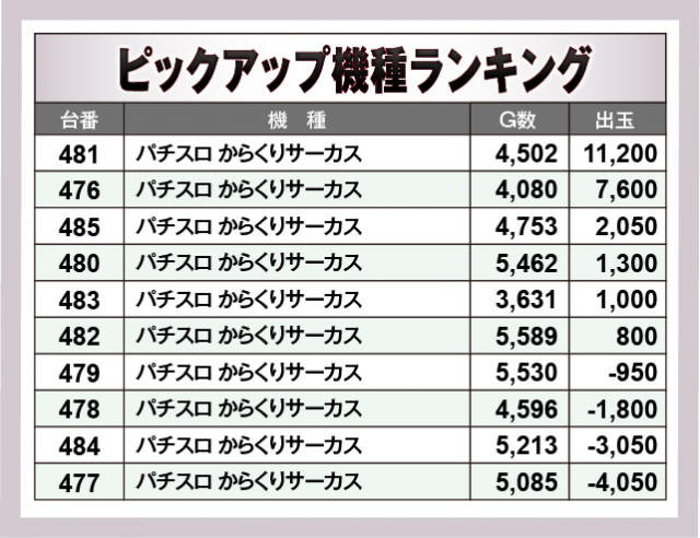 ※出玉数順に掲載しています