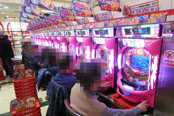 多くのプレイヤーでにぎわっていた1円パチンコでも、海物語シリーズが人気。