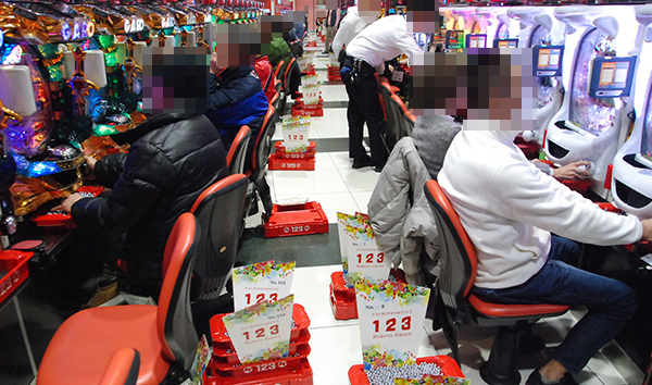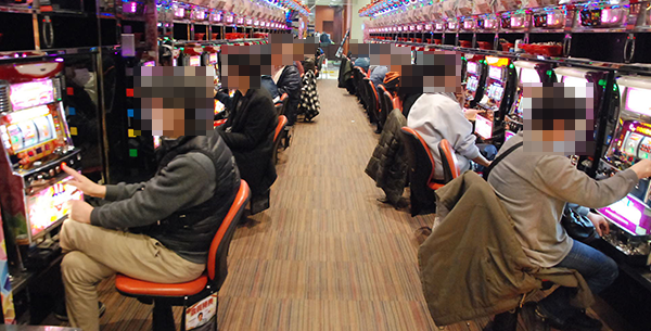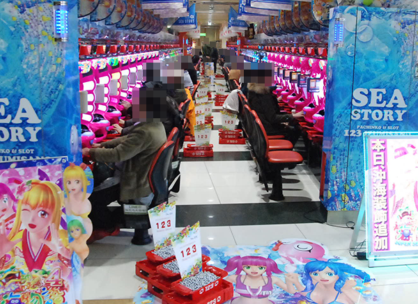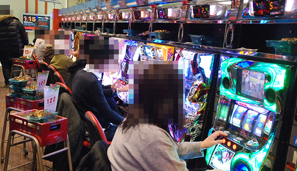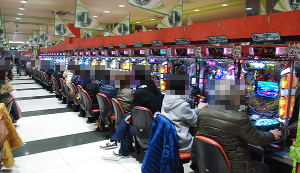 大勢のプレイヤーが遊技を楽しむ店内の雰囲気は明るく、パチンコ・パチスロともに活気づいていた。