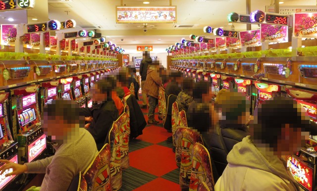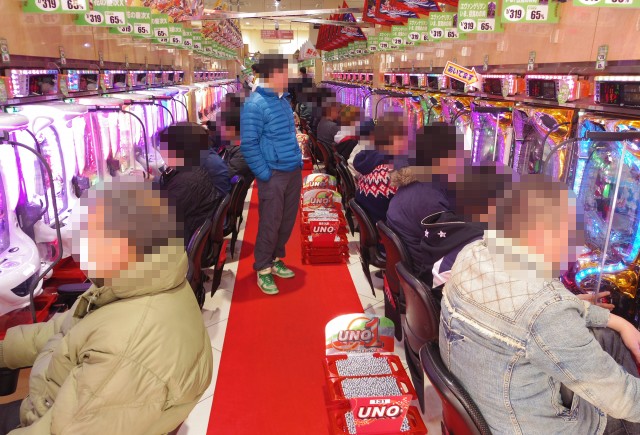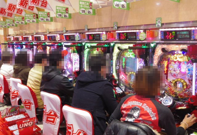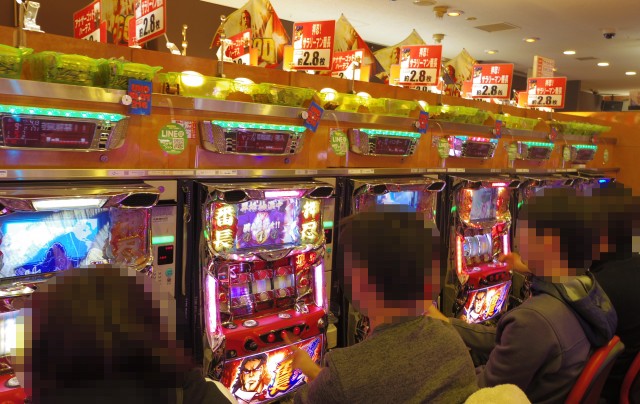 さらに、大人気の北斗の拳シリーズ中でも「ぱちんこCR真・北斗無双」が、空席が見当たらないほどプレイヤーであふれていた。