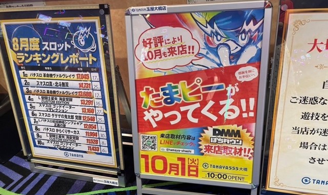 9月18日、『玉屋555大橋店』にて「たまピー来店取材」が実施された。前回取材時では、万枚OVERや大台突破台が多数発生する盛り上がりをみせた。この日は同店創業日当日ということで、訪れたファンはこれまで以上に期待感に満ち溢れており、同店もまたやる気を漲らせていたのが鮮烈だ。果たしてどのような1日になったのか…活躍した機種たちとともに、店内の様子をお伝えしよう!