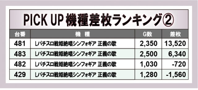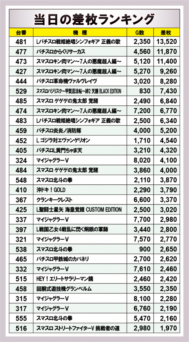 ※差枚数順に掲載しています。