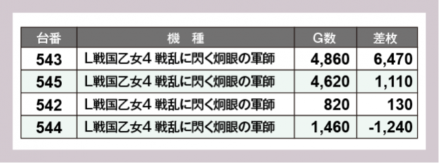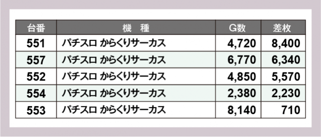※差枚数順に掲載しています