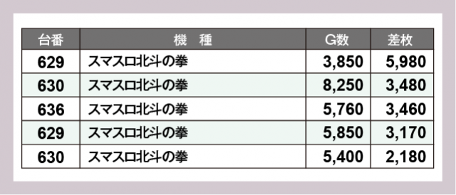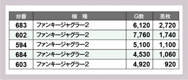 ※差枚数順に掲載しています
