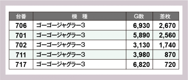 ※差枚数順に掲載しています