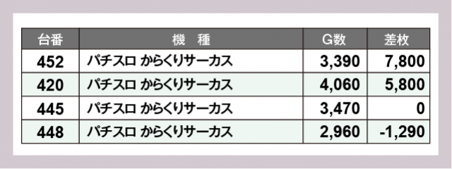 ※差枚数順に掲載しています