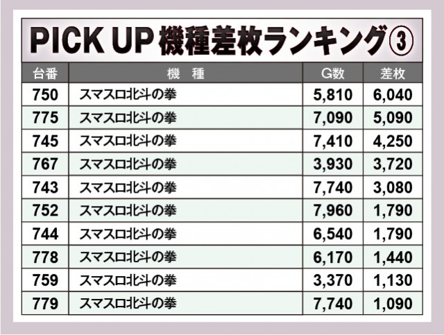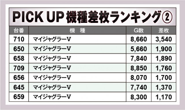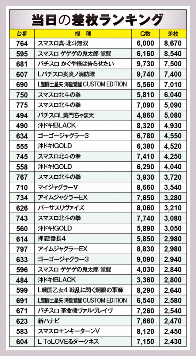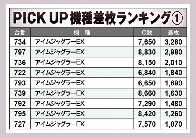 ※差枚数順に掲載しています。