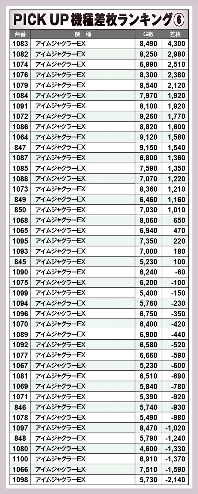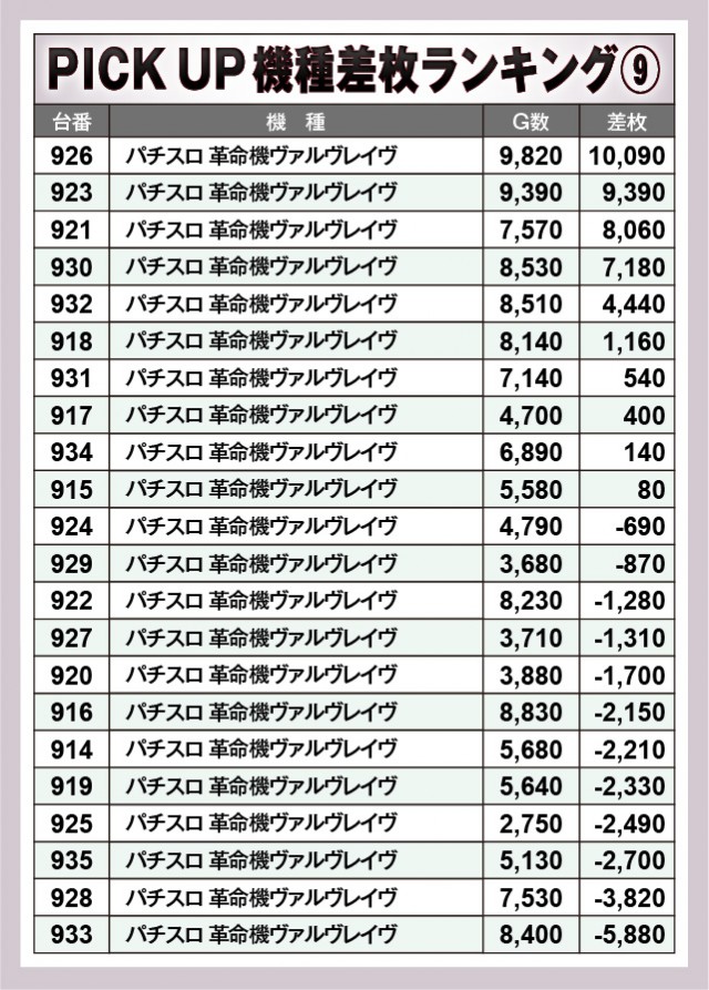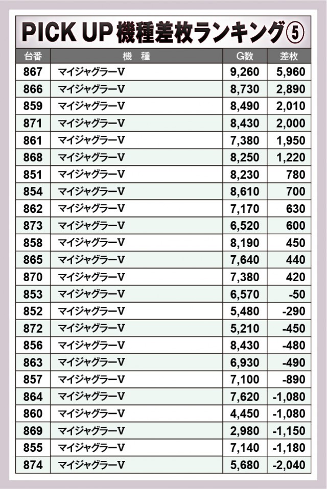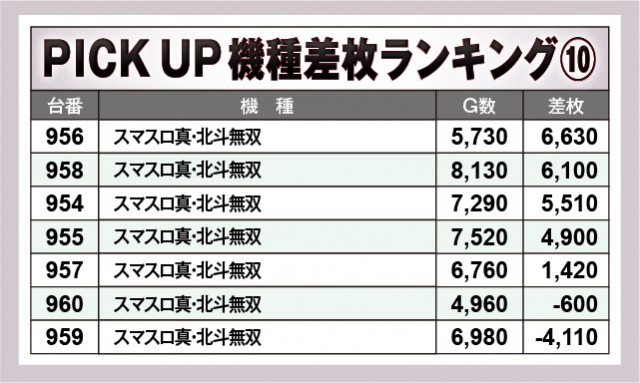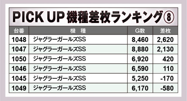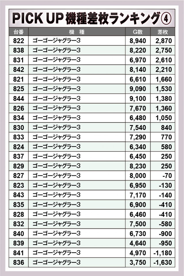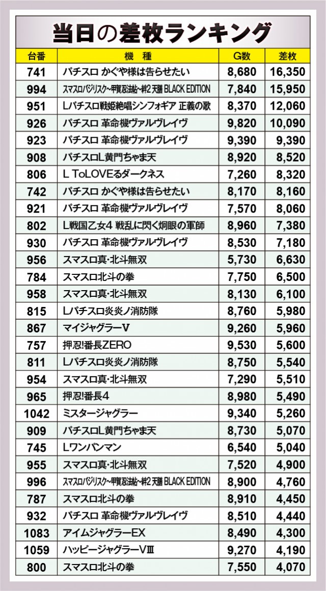※差枚数順に掲載しています。