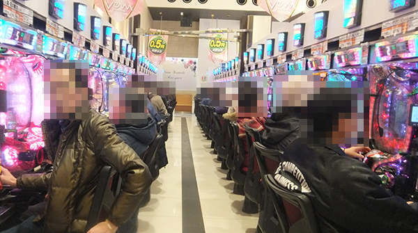 パチンココーナーをみると、幅広いスペックの機種に遊技をはじめるプレイヤーの姿が確認できた。