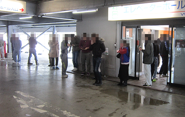 開店前に集まっていた人数は30名前後。遊技の話で盛り上がっているプレイヤーもみられ、開店を心待ちにしていることがうかがえた。