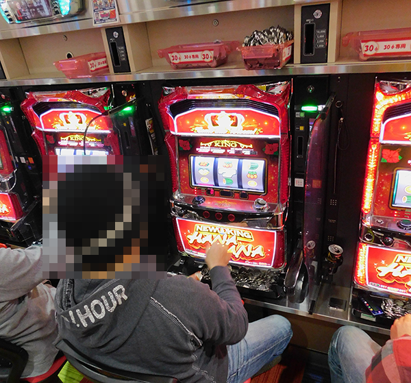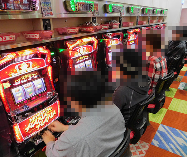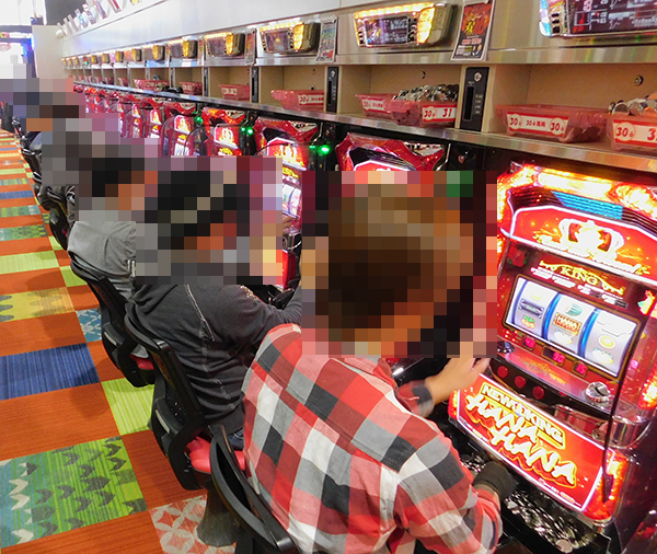 ホール内を見渡すと、「ニューキングハナハナ-30」が空き台もほとんど見当たらないといった状況。