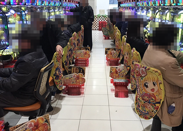 「CRぱちんこ GANTZ」や「CR戦国乙女〜花〜」といった新台も活気づいており、華やかなシーンを目撃。