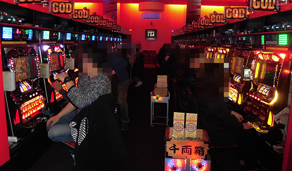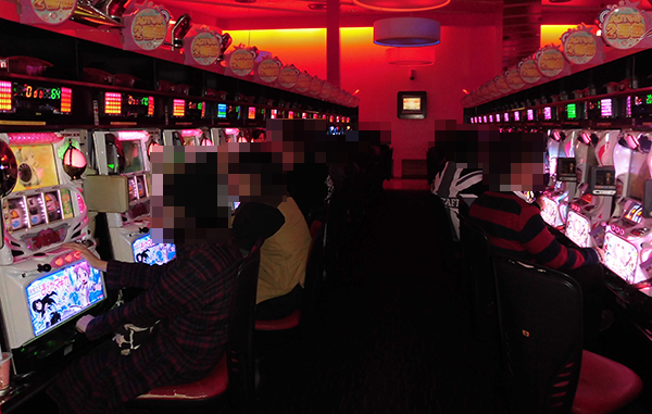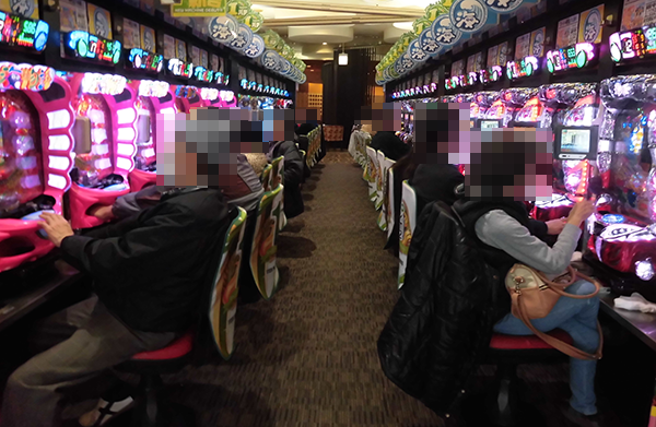 1円パチンコの支持も厚く、シマ内は楽しげな雰囲気。