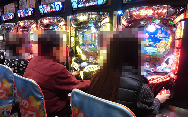14時をまわった頃の4円パチンコでは、「CRA大海物語3Withアグネス・ラム」や「CRフィーバーパワフル」といった遊パチが人気。多くのプレイヤーが笑顔をみせていただけに、満足度も高かったように思えた。