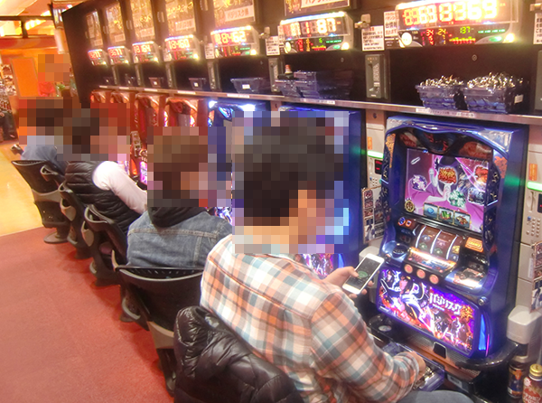 パチスロをみると、「バジリスク~甲賀忍法帖~絆」に機種の性能を最大限まで引き出しているといった姿を目撃。プレイヤーのイキイキとした表情からは、満足度の高さもうかがえた。