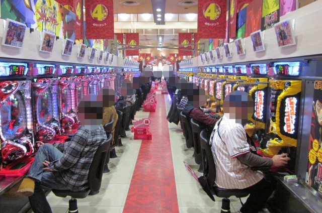 最初に4円パチンココーナーをのぞいてみると、「ぱちんこCR真・北斗無双」が好評。機種の性能を引き出すプレイヤーの姿を確認、周囲の注目を集めていた。