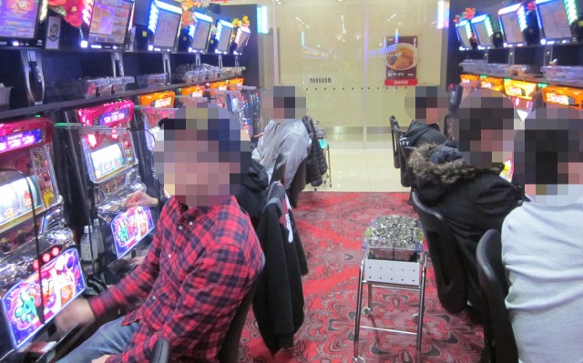 20円パチスロコーナーで一番の人気を集めていた「沖ドキ!-30」では、魅力的な光景が広がっており、いたる所で笑顔を見ることができた。