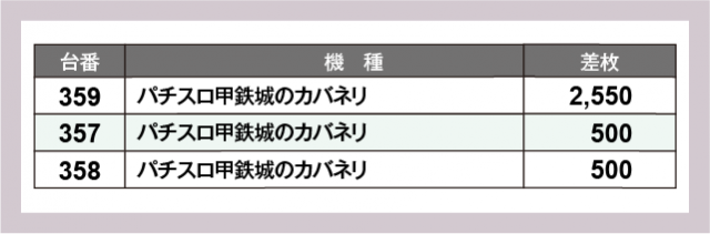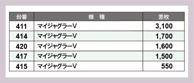 ※差枚数順に掲載しています