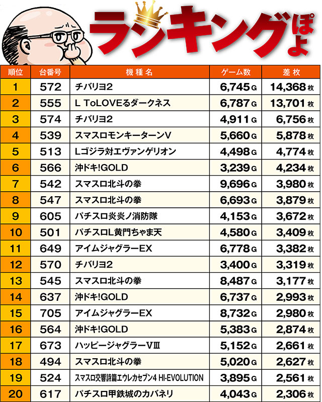 トータル差枚ランキング…ぽよ!