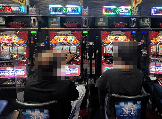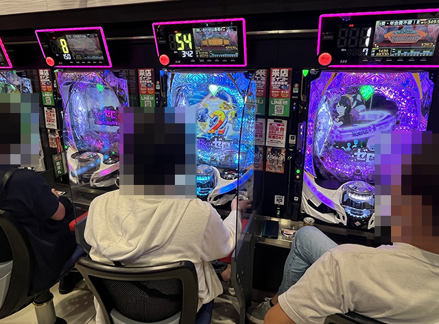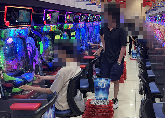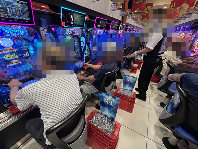 「P大海物語5」と「P大海物語5 ブラック」で、5箱以上の持ち玉を使い、笑顔で遊技をおこなっている姿を目にした。