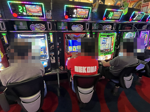 取材時は8台中7台が埋まっており、大当り回数が26回や22回の台を確認。