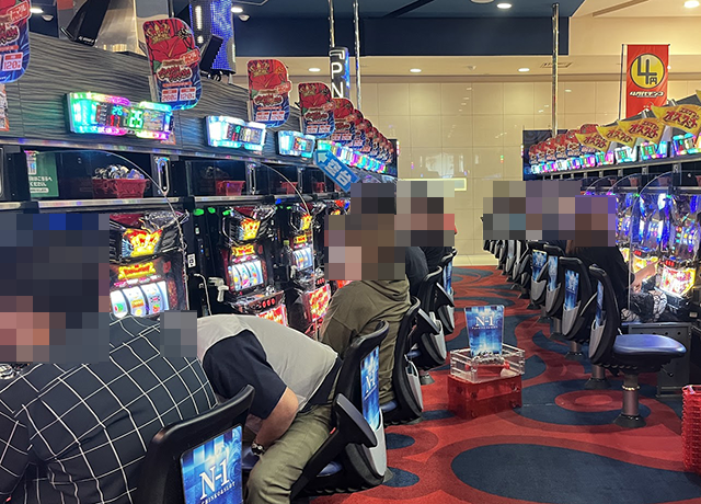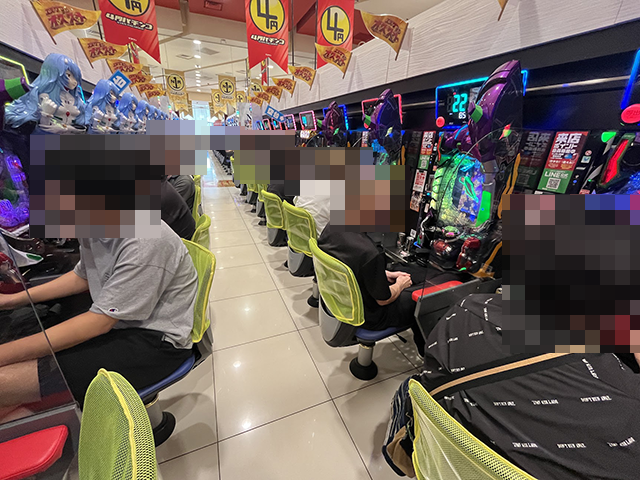 ホールには、多くのプレイヤーが集まっており、パチンコとパチスロの両方がにぎわいをみせていた。