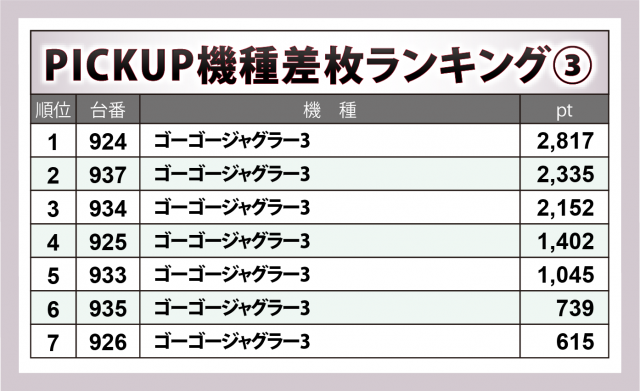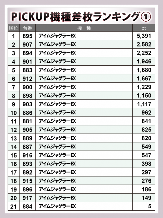 以下、20スロの優秀台を機種ごとにチェックしていこう。