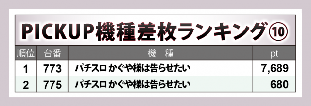 『パチスロ かぐや様は告らせたい』3台では表の2台がプラスで、773番台が+7千7百弱と、大量獲得の機会が確かに存在した。
