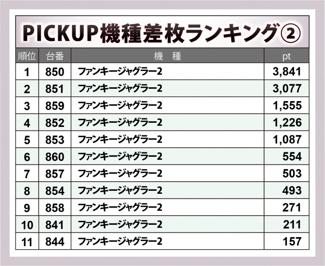 『ファンジャグ』20台も半数を超える勝率となった上に、+3千超×2・+1千超×3と、勝負に値する環境であった。