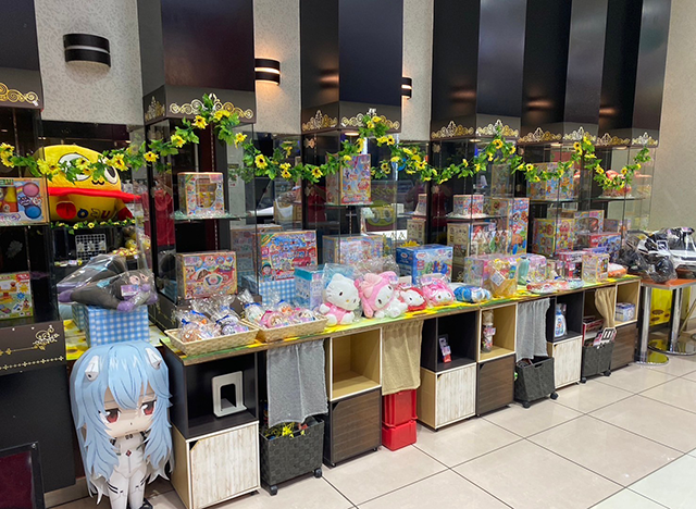 日用雑貨や食品、おもちゃなどが並ぶ賞品コーナーも魅力的。