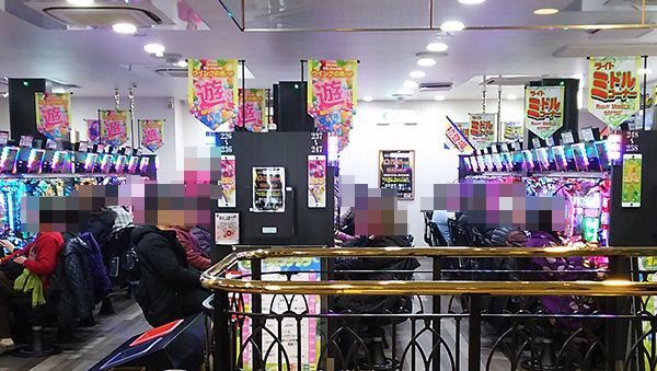 1円パチンコをみると、前日の取材時と同じく、ほぼ満席といった状況。