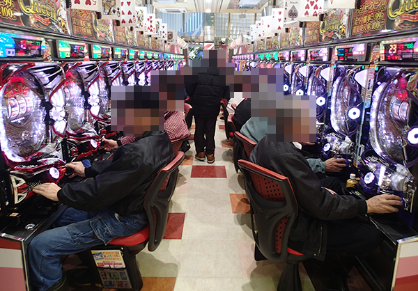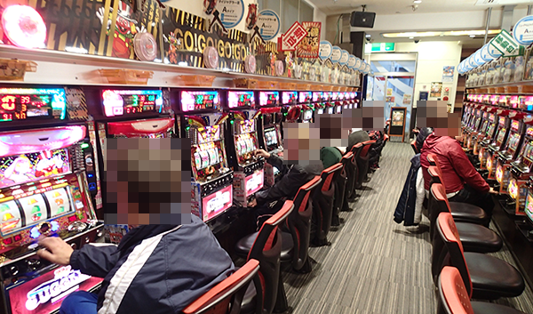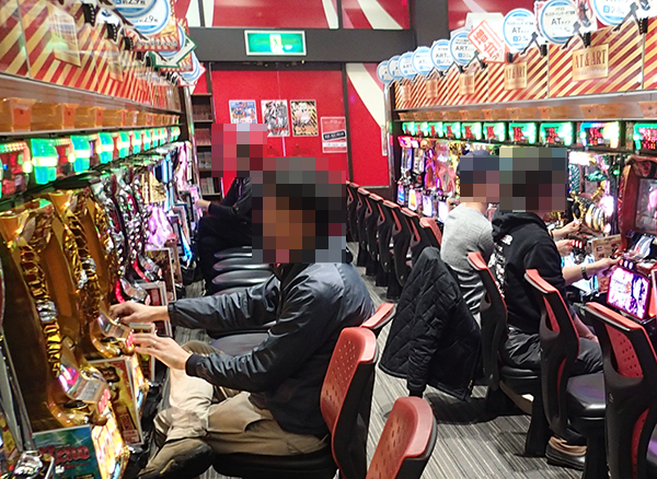 にぎやかなムードが感じられる5円パチスロでは、「プレミアムビンゴ」が盛況。満面の笑みを浮かべたプレイヤーの姿からは、満足度の高さもうかがえた。