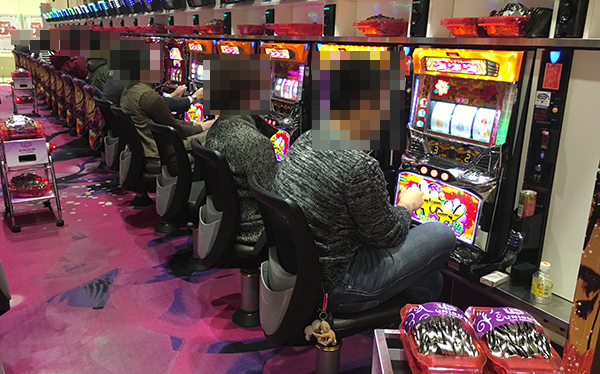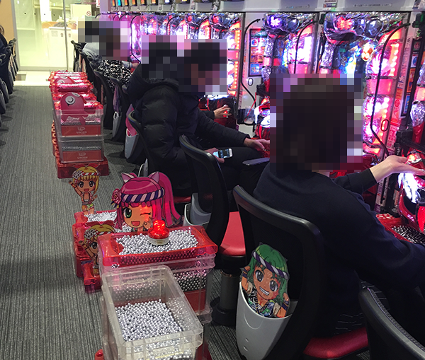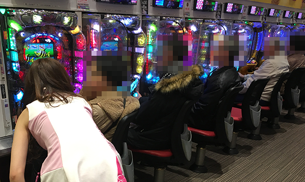 夕方頃の4円パチンコでは、海物語シリーズが大盛況。なかでも、「CRスーパー海物語IN JAPAN」と「CR大海物語BLACK」でのプレイヤーの活躍がひときわ目立っていた。