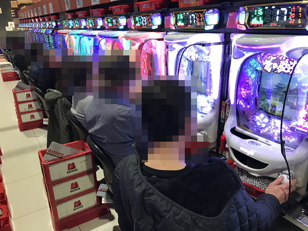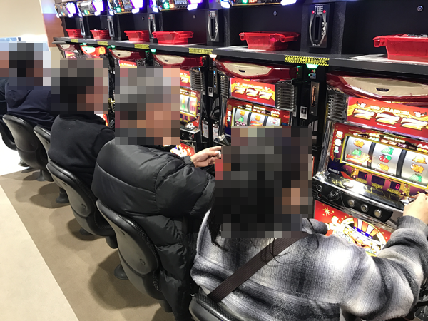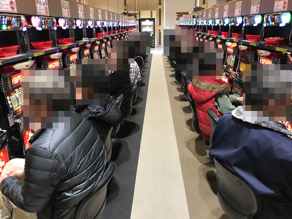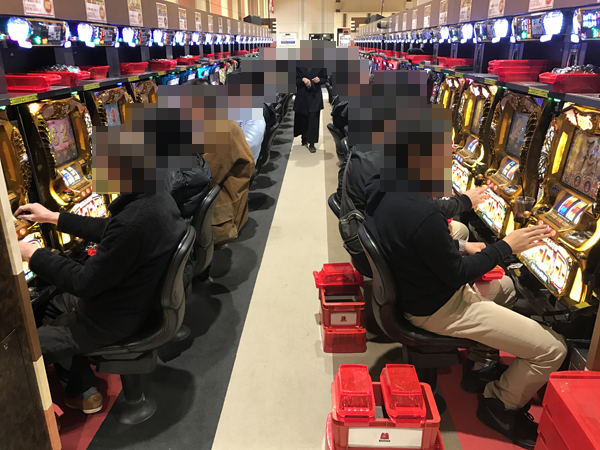 あらゆる場所に活気のある光景をとらえた。「マルハン古川店」の一面はパチスロコーナーで決まりだろう。