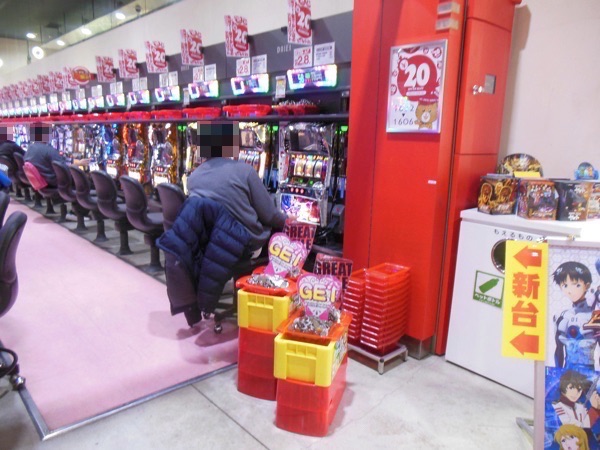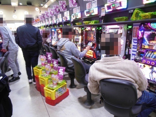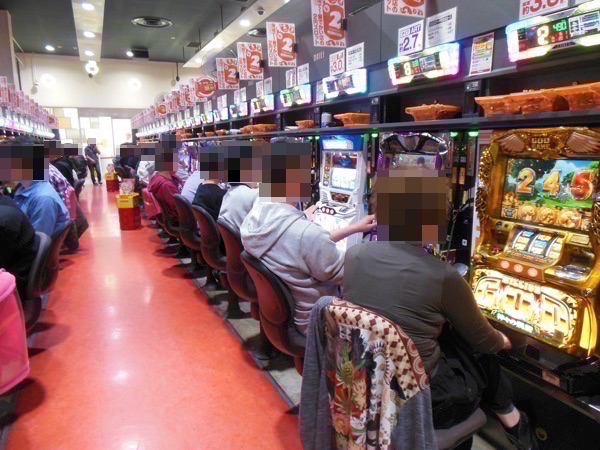 開店直後は2円パチスロに向かうプレイヤーが多く、午後になるとさらにコーナー全体から活気が感じられた。