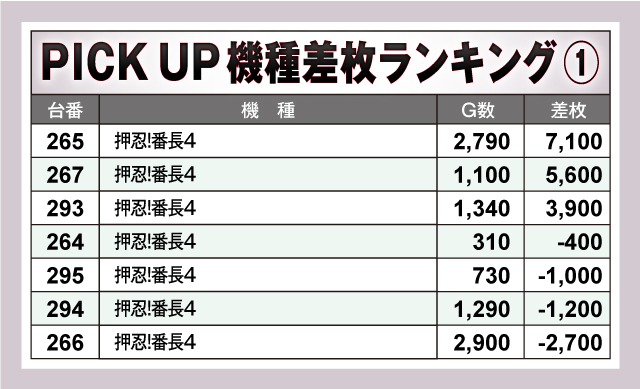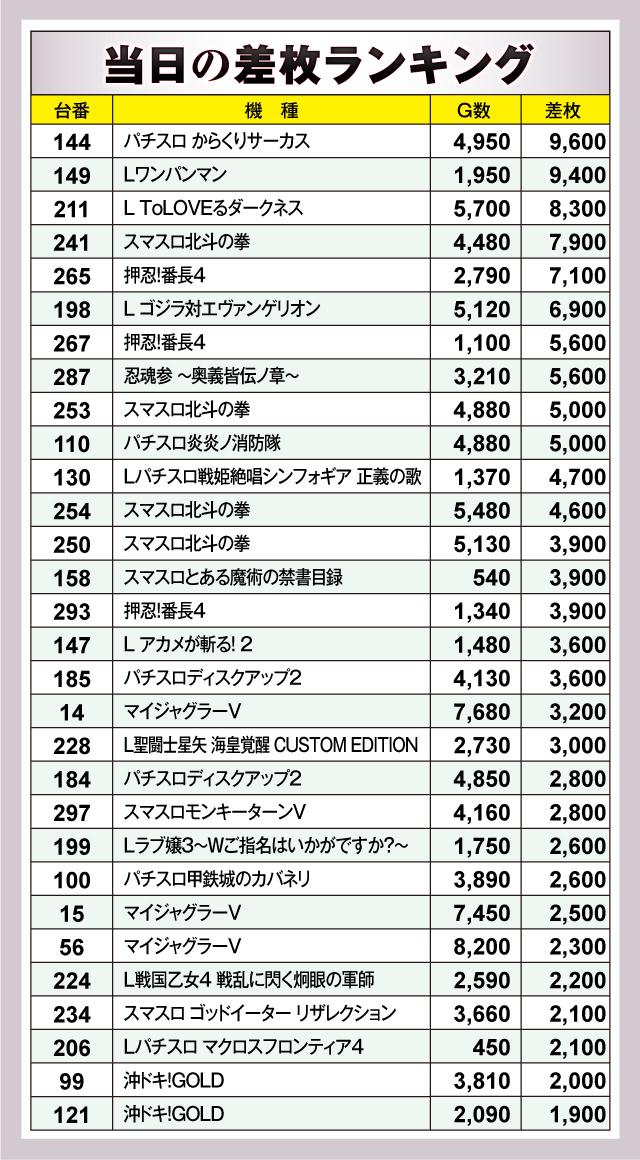 ※差枚数順に掲載しています。
