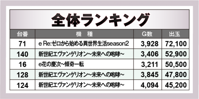 ※出玉数順に掲載しています