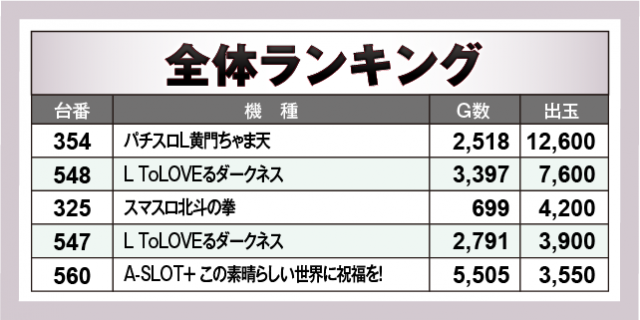 ※出玉数順に掲載しています