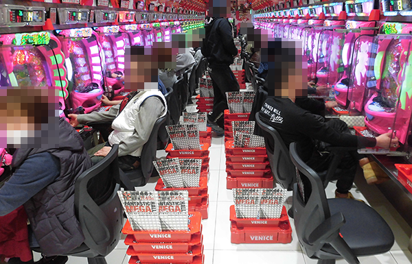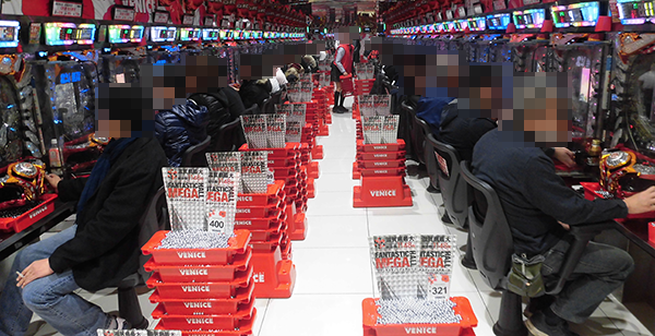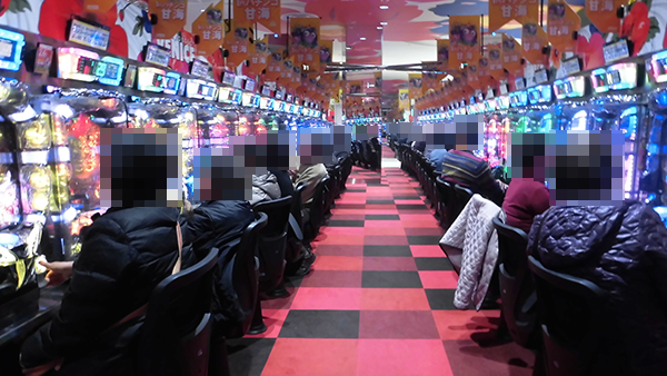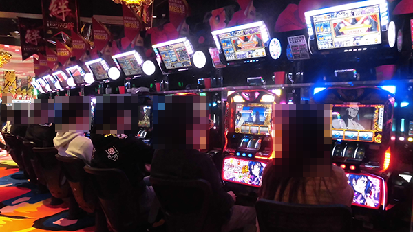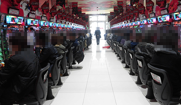さまざまな機種が支持されている4円パチンコでは、「ぱちんこCR真・北斗無双」がフル稼働となっていた。