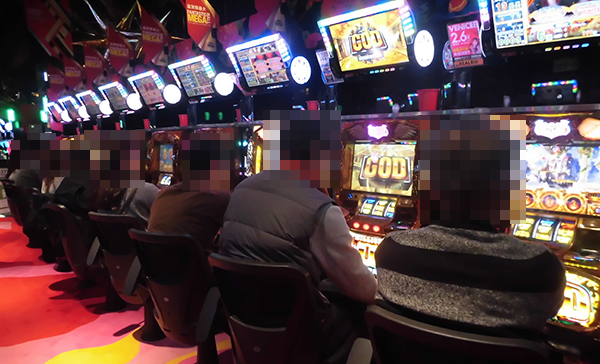 14時をまわった頃の20円パチスロをみると、「ミリオンゴッド-神々の凱旋-」と「アナザーゴッドハーデス」に機種の性能を最大限まで引き出しているといった姿を目撃。周囲のプレイヤーから注目を集めるほどの盛況ぶりであった。