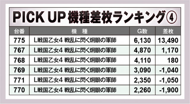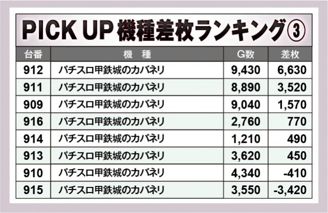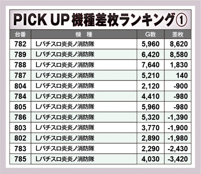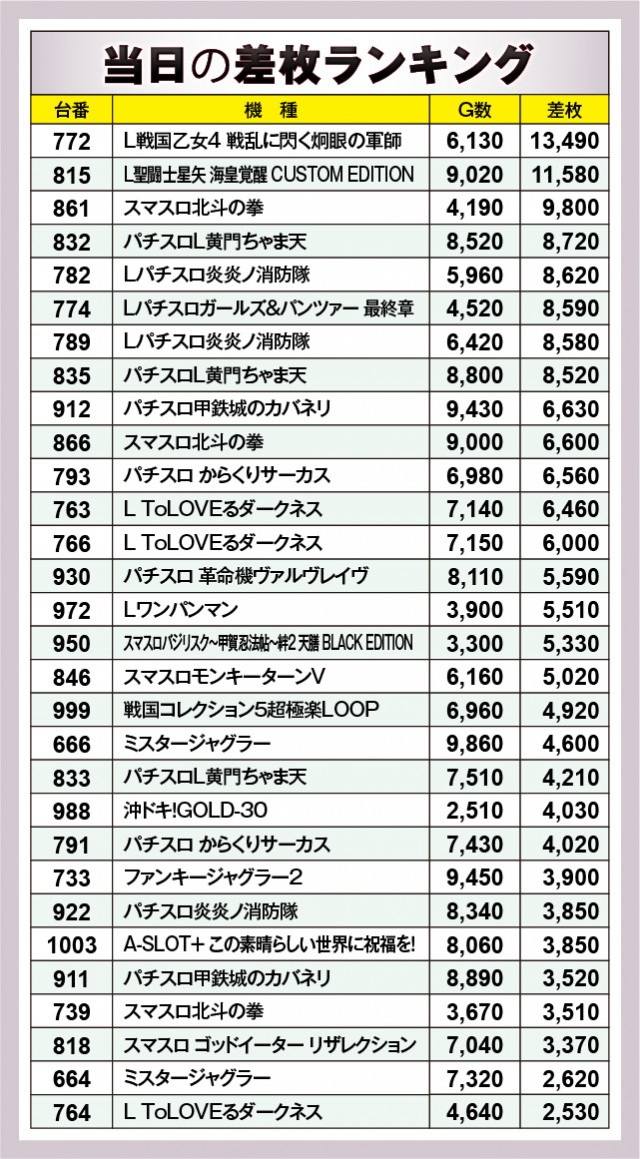 ※差枚数順に掲載しています。