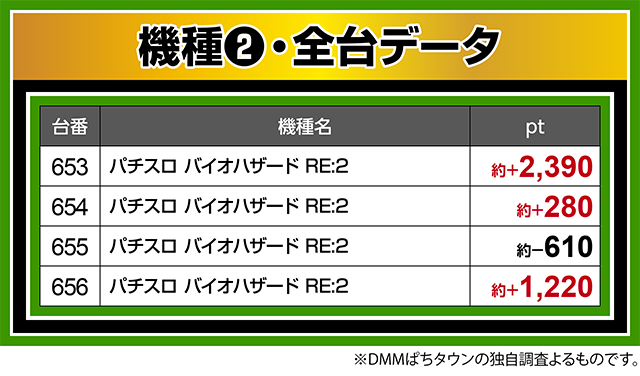『パチスロ バイオハザード RE:2』は設置されている4台のうち3台がプラス。