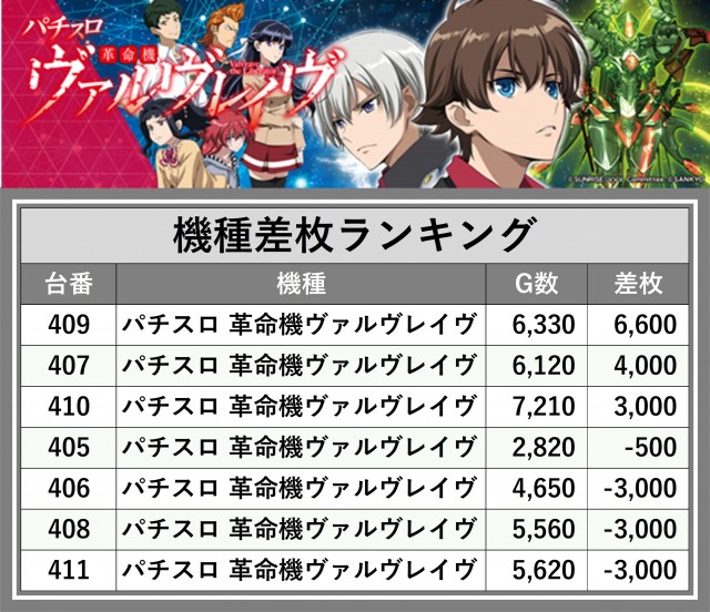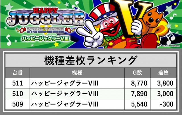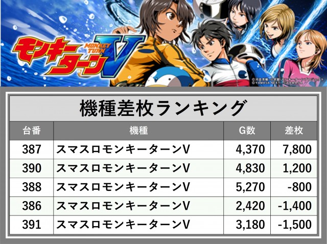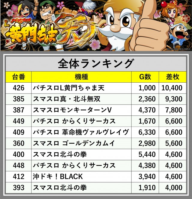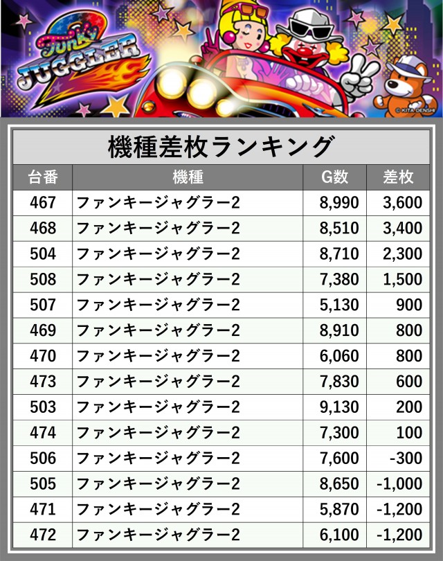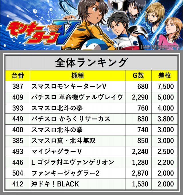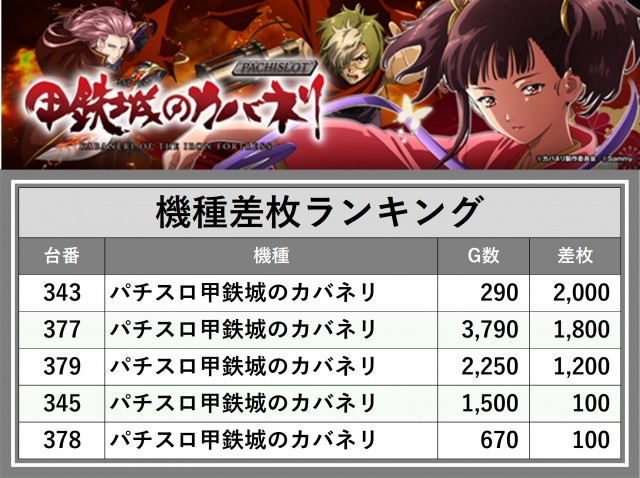 ※差枚数順に掲載しています
